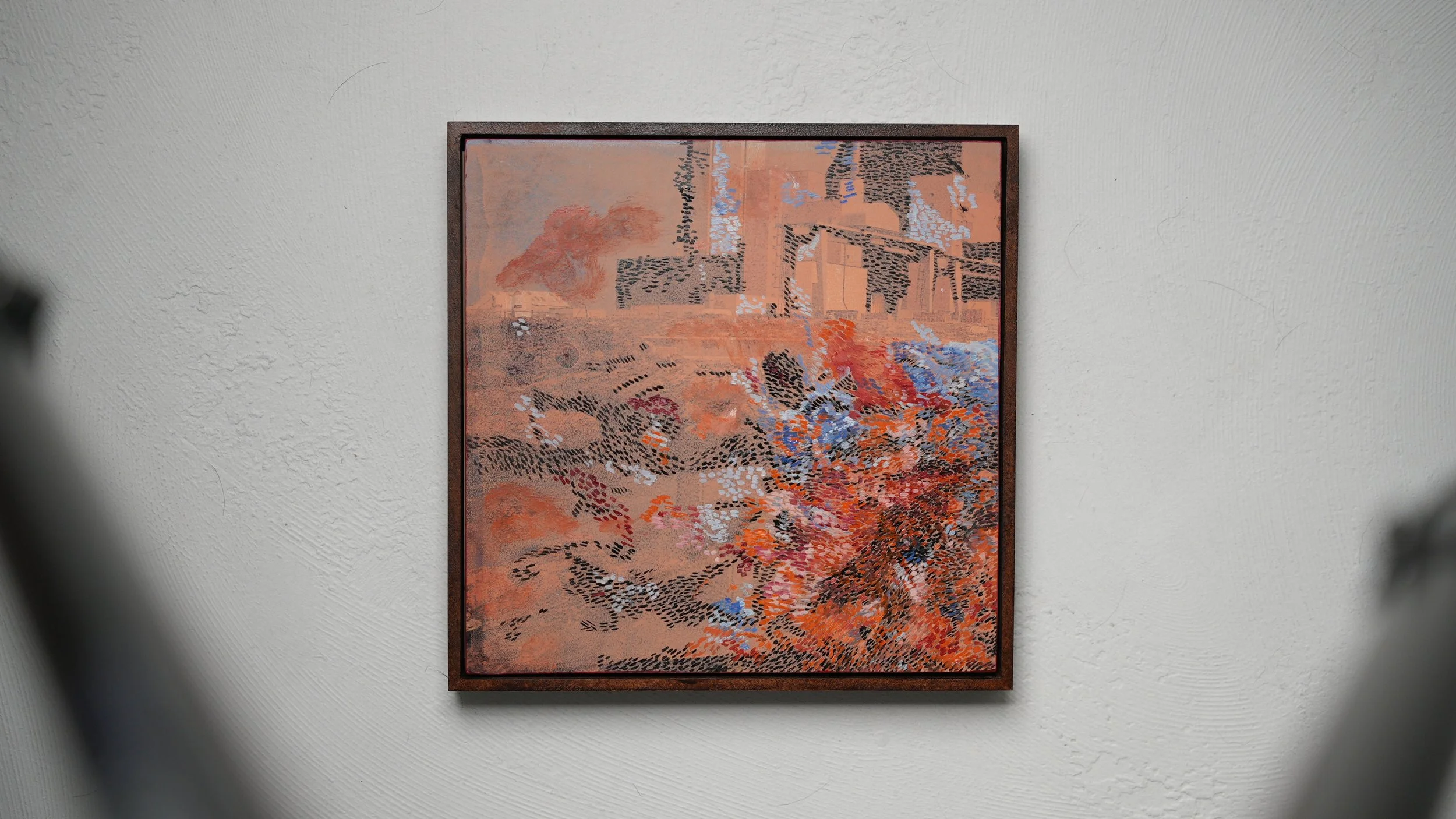 30.5 x 30.5cm, mixed medias, oil and acrylic on paper, mounted on board, framed
