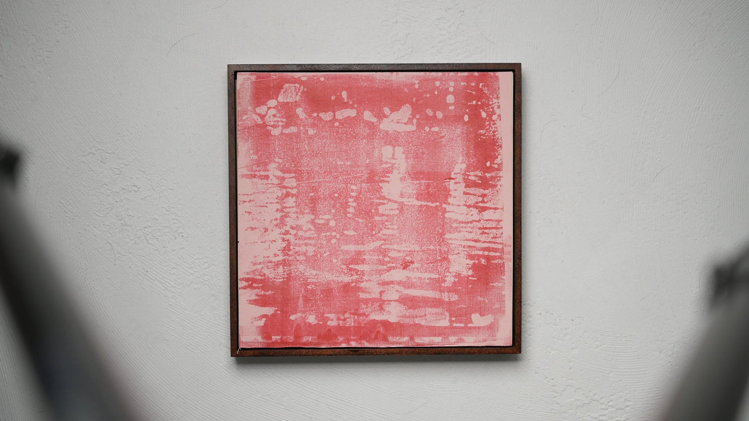 30.5 x 30.5cm, gel plate monoprint, mounted on board, framed